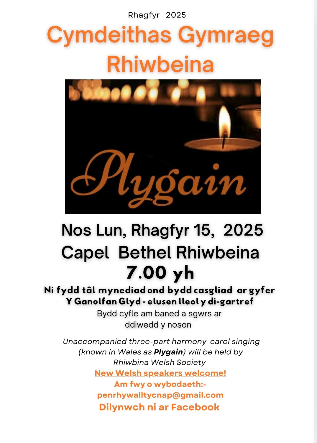 It’s that time of year when Plygain services start popping up around Cymru, and beyond, so here’s your new thread where you can check on this year’s opportunities.