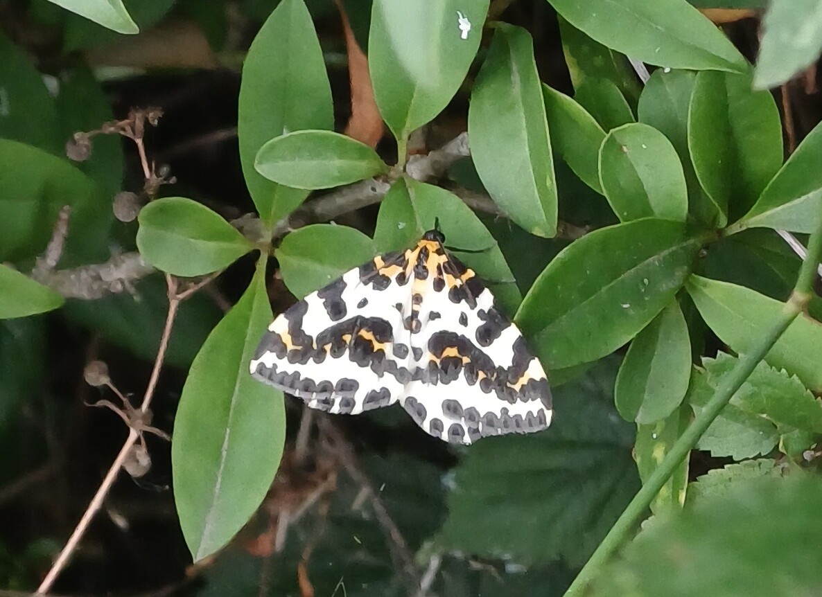 It’s a while since I’ve posted a photo here, so here’s a nice one of a Magpie Moth which we spotted on last Thursday’s Oxford group walk+sgwrs in Bernwood Forest: